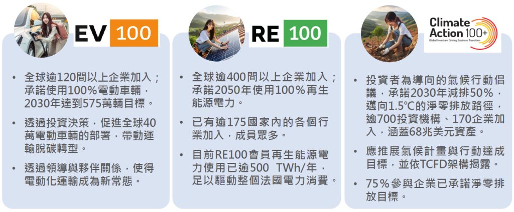 以RE100為例,加入的企業公開承諾在2050年使用100%再生能源電力的環境保護約定,藉此提升社會形象和信任度,獲得股東和民眾青睞。國際大廠紛紛加入RE100後,台灣各領域的產業龍頭也爭相加入RE100。
